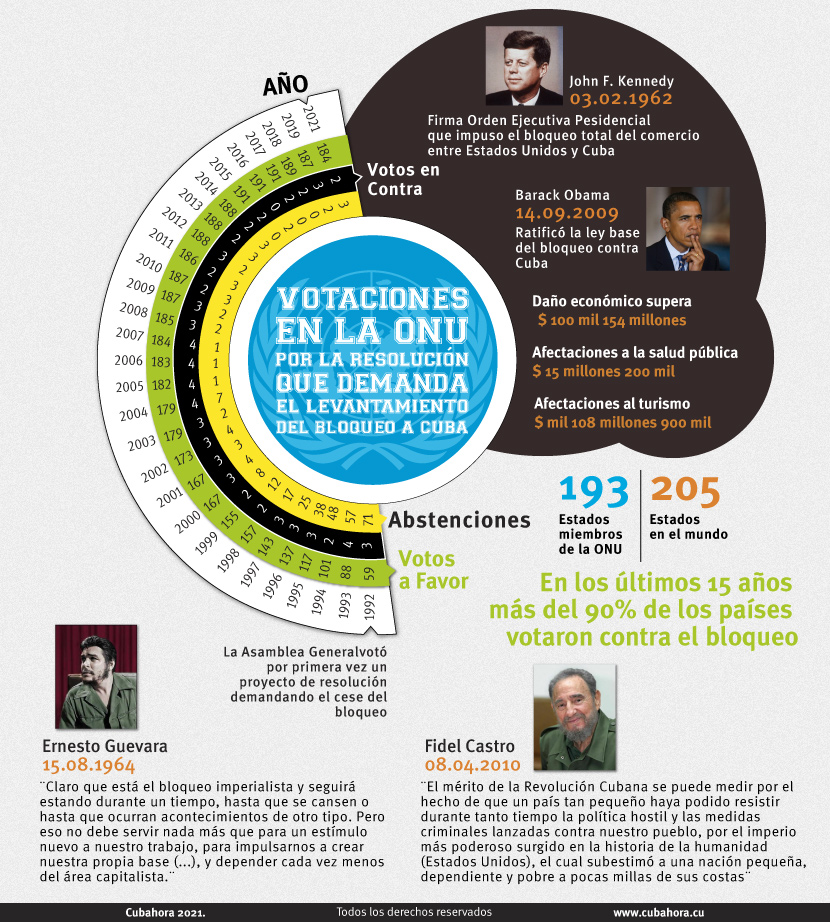 Hoy, en medio de la pandemia de COVID-19 que aún afecta al mundo, regresamos a la Organización de Naciones Unidas (ONU) para exigir el fin del bloqueo. Aunque atípica, por las condiciones epidemiológicas, no faltarán quienes rechacen y se abstengan, pero sobre todo quien reconozca la injusticia y la condene. Tradicionalmente, han sido mayores las cifras de países que han mostrado su apoyo a Cuba, “porque ya sabemos todos que este mundo es de los más”, como dice el trovador Tony Ávila.