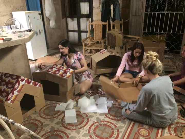 En el mes de enero construyeron ocho casitas con papel y cartón que colocaron en lugares frecuentados por perros expuestos a la hipotermia (Cortesía de Tesabel Macías González)