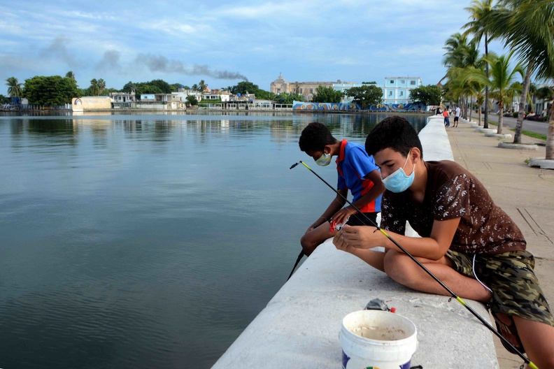 Niños pescando en el Malecón de Cienfuegos (Foto: Modesto Gutiérrez Cabo/ ACN)