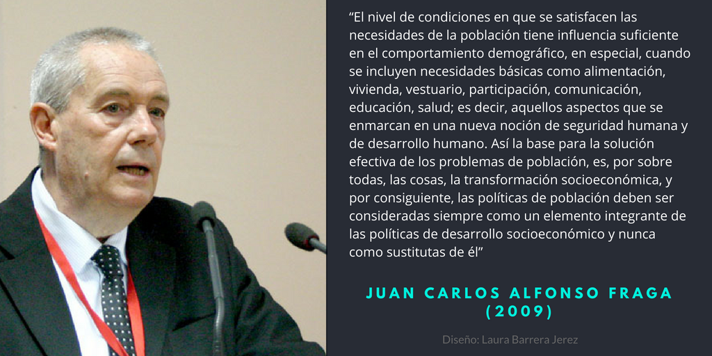 “En lo que pudiera definirse como la última etapa de la transición [demográfica] y uno de sus efectos principales, se presenta el envejecimiento de la población; sin duda el principal problema demográfico de Cuba en la actualidad, y también con perspectiva futura, dada sus implicaciones económicas, sociales, etc. A fines del siglo pasado el 14 por ciento de la población tenía 60 años y más, para la actualidad, alcanza el 15,4 por ciento. Este comportamiento, singular y de cierta forma inédito en el contexto de los países de América Latina caracteriza una transición demográfica muy avanzada, en la cual la fecundidad, como principal variable demográfica actuante en el crecimiento de la población, ha tenido una disminución significativa, que para muchos ha sido de las más intensas a nivel internacional, lo cual también ha caracterizado la evolución de la mortalidad”, según Alfonso Fraga.