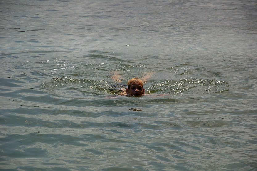 Niño en Divina Pastora: Bañarse en playas y los ríos son de las opciones más gustadas en verano. (Karla Castillo Moré/Cubahora).