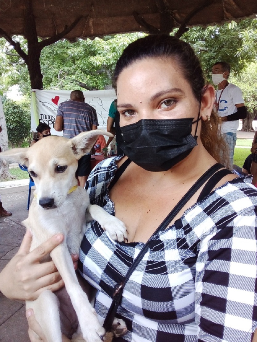Rosmery Rodríguez decidió adoptar esta perrita porque le gustó su carita y es muy dócil. (Maya Quiroga/Cubahora)