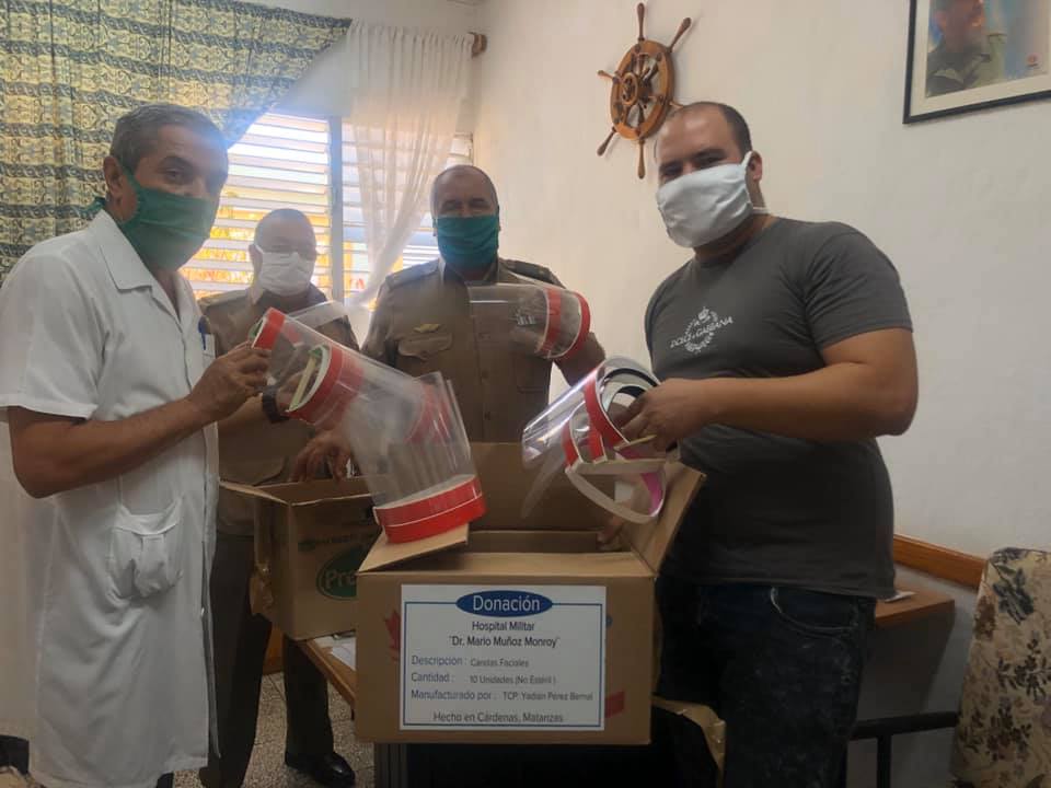 El 15 de abril fueron entregadas las caretas elaboradas por este joven y su red de colaboradores, al Hospital Militar de Matanzas. (Foto: Cortesía del entrevistado)