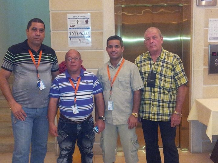 "Hola a las amigos de f. Publico ahora la foto de unos colegas acá en Liberia. Ellos son clínicos e intensivistas y tienen la gran responsabilidad de velar por el estado de salud de todos los colaboradores. Nos examinan diariamente. Con medición de temperatura, y ante cualquier signo de alarma, actúan de forma inmediata, son los encargados además del seguimiento de los enfermos crónicos, aunque estén compensados. Es común verlos juntos pues actúan como comisión a la que también pertenecen enfermeros. Esa foto sale mañana. Junto a los epidemiólogos son el equipo con mas responsabilidades. Ellos son, de izquierda a derecha, el Dr. Mejias, de Bartolome Massó, en Granma, el Dr. Llizo, de La Habana, intensivista en el hospital Frank País, el Dr Yunier, de Pinar del Río, y por último y no por eso menos importante, todo lo contrario, el profesor Leonardo Fernández, intensivista en el hospital provincial de Guantanamo. Para ellos, de parte del resto de la brigada, nuestro respeto y admiración".