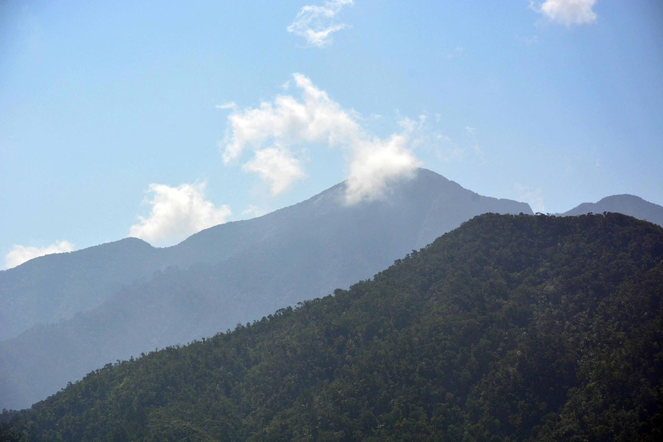 El punto más alto del Parque Nacional Pico Turquino (tras las nubes), a unos mil 974 metros sobre el nivel del mar.