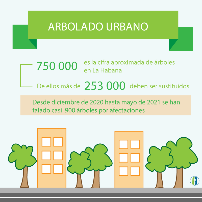 En La Habana existen más de 750 mil árboles. Hasta el momento se han talado unas 900 especies y alrededor de 253 mil (33 por ciento) deben ser sustituidas debido a que están enfermas, dañadas o provocan algún tipo de afectación al tendido eléctrico, redes hidrosanitarias y las aceras, declaró al Canal Habana Alexander Zorrilla, director provincial de Áreas Verdes.