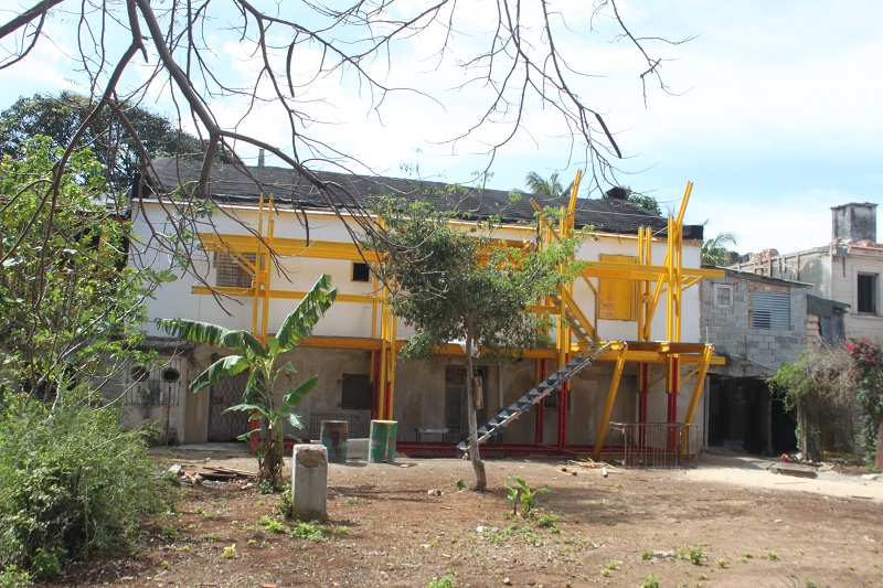 Sin dejar de tener en cuenta el parecer de los vecinos del inmueble las obras de restauración parcial, mediante las que se intenta salvar las zonas más afectadas de su estructura, han sido ejecutadas por los estudiantes y maestros cubanos junto al equipo de Recetas Urbanas (Marta Espino, Juan José Estrada y David Orriols, quienes han traído de España algunos materiales y herramientas).